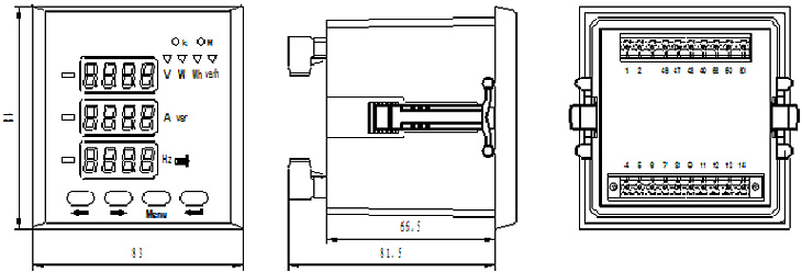 安装方式:屏装(开孔尺寸:76×76mm) 表壳深度:81.5mm