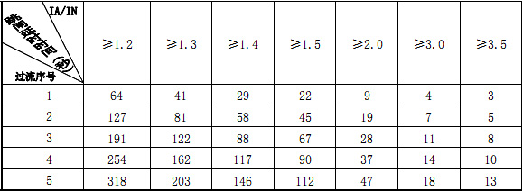 注:表中 IN为整定电流值,IA 为工作电流值,动作时间单位为秒。