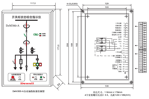 □ 安装方式:屏装(开孔尺寸:119×179mm)