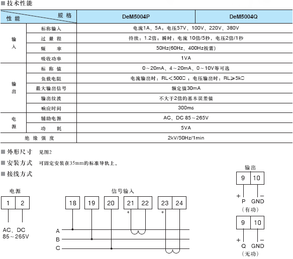 >> DeM500系列电量变送器