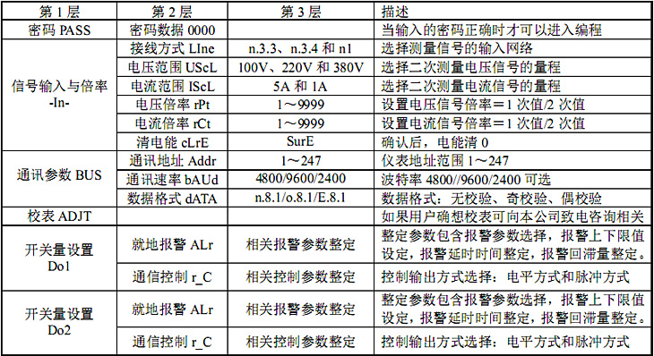编程菜单结构说明表